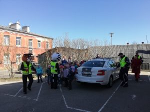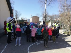 Šodien pie mums ciemojās Latvijas Valsts policijas pārstāvji… Bērniem bija iespēja tuvāk apskatīt un izpētīt policijas mašīnu (pasēdēt tajā, izpētīt rācijas, video reģistratoru utt.). Lielu sajūsmu izraisīja policijas četrkājainie apmācītie darbinieki – suņi, kas iepazīstināja ar savu darbu un parādīja trikus. Paldies Valsts policijai par pasākumu, bērniem bija liels prieks!