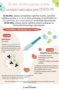 Būsim sociāli atbildīgi par sevi un bērniem, kas ir apkārt, un izmantosim piedāvāto iespēju vakcinēties, lai bērni ātrāk atgrieztos uz skolu!