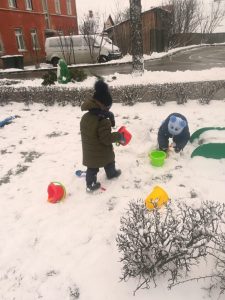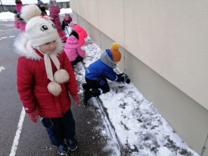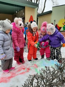 Sniega diena ļauj iepazīstināt bērnus, gan viņu ģimenes ar visdažādākajām aktivitātēm ar sniegū, kā arī dot iespēju lieliski pavadīt laiku svaigā gaisā. Iestādes pedagogi organizēja bērniem dažādas ,,sniega” aktivitātes, kurās laikā bērni izbaudīja sniega burvību un īpašības, eksperimentēja, novēroja, meistaroja un protams pavadīja laiku svaigā gaisā metot sniega pikas, vizinot viens otru ragavās, ceļot sniegavīrus, sacenšoties stafetēs “Ragaviņu vilkšana”, zīmējot sniega eņģeļus, krāsojot sniegu, darbojās ar sniega lāpstām, ragavām un citu ziemas inventāru.